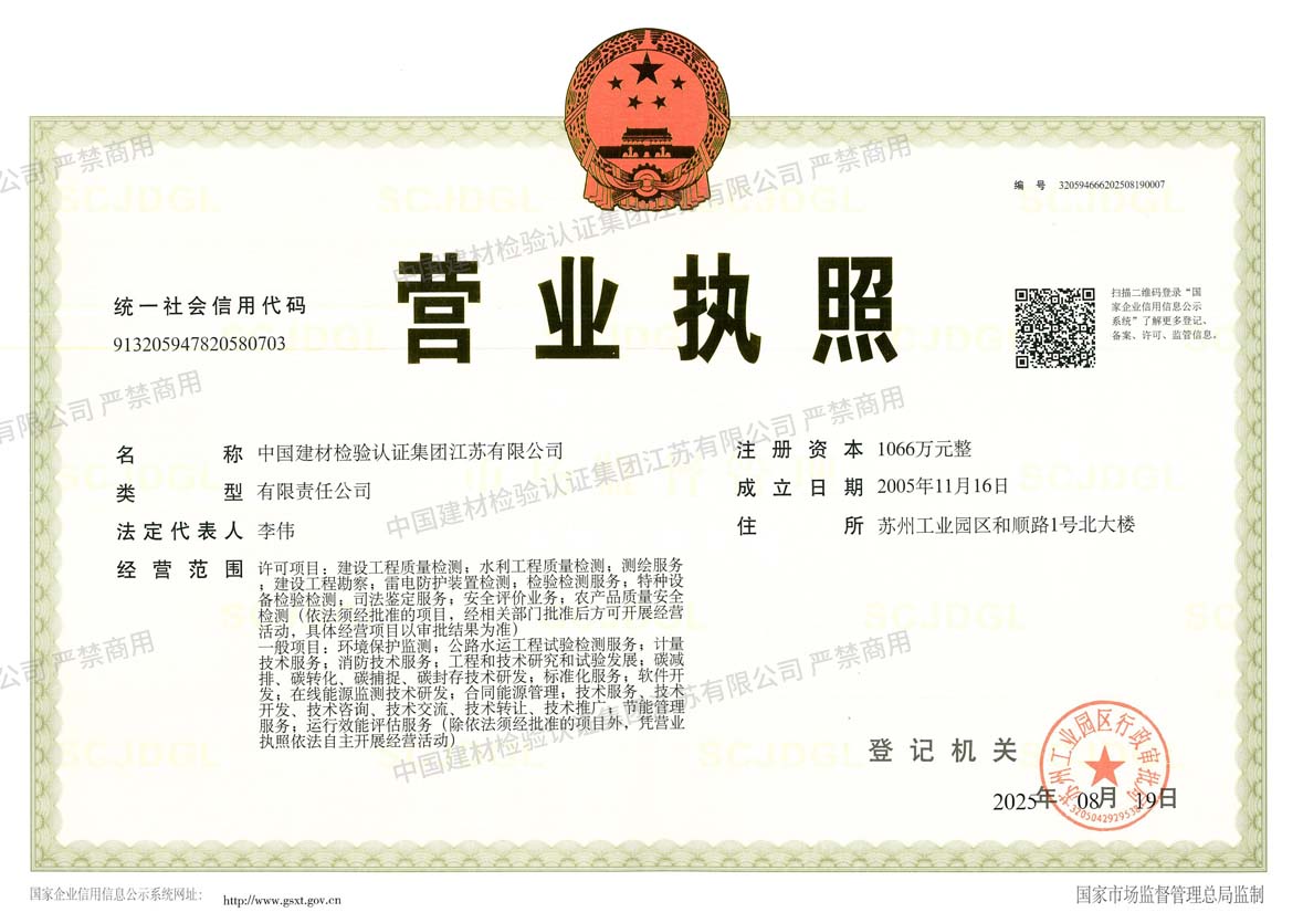 中國建材檢驗認證集團江蘇有限公司,隸屬于國檢集團,總部位于蘇州工業園區和順路1號,于2005年11月16日成立,試驗室面積約11000平方。